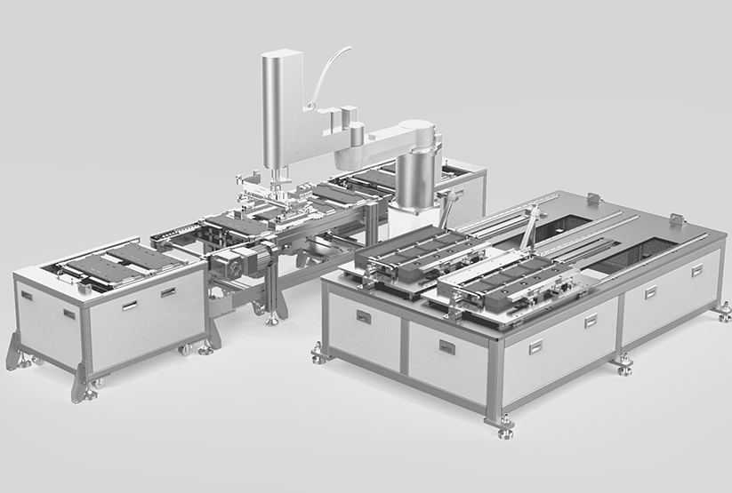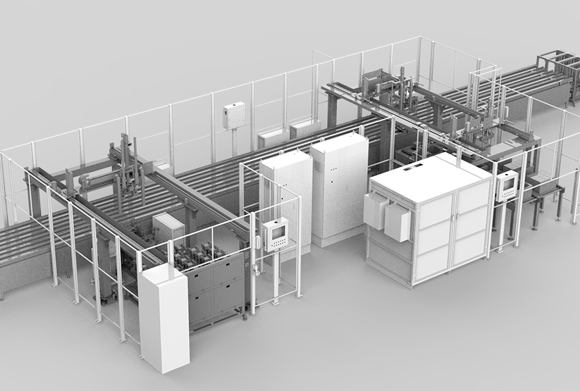 该自动线旨在实现模组自动智能化装配及测试,包括组件清洗、组件涂胶、组件上线、电堆堆叠、侧板焊接、BUSBAR焊接、模组打码、绝缘测试、EOL测试及产线MES等功能。
